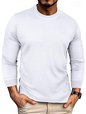בגדי ריקוד גברים חולצת וופל חולצה קצרה טופ טי חולצה ארוכת שרוולים שרוול ארוך צווארון עגול קצר קיץ & אביב אחיד אופנתי מעצב בסיסי סגנון קלאסי חופשה רחוב ליציאה שחור לבן אפור חולצה עליונה לגברים