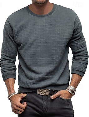 בגדי ריקוד גברים חולצת וופל חולצה קצרה טופ טי חולצה ארוכת שרוולים שרוול ארוך צווארון עגול קצר קיץ & אביב אופנתי מעצב בסיסי חם חופשה יום יומי\קז'ואל תלתן חולצה עליונה לגברים