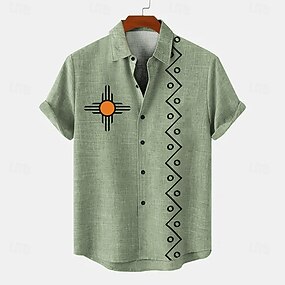 בגדי ריקוד גברים חולצה חולצת פשתן חולצות רטרו חולצה וינטג' חולצה אתנית יומי פול תלתן חאקי שרוולים קצרים צווארון מתקפל קיץ אביב ביגוד