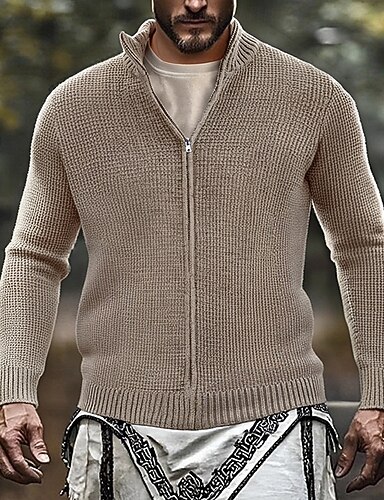 בגדי ריקוד גברים סוודר סוודר קרדיגן מצולע כבל לִסְרוֹג חולצות רגילות סרוג אחיד צווארון גבוה חופשה אופנתי קזו'אל לבוש יומיומי ביגוד סתיו קיץ & אביב חאקי אפור M L XL