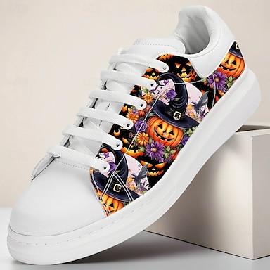 נעלי ספורט לבנות לגברים עם דוגמת דלעת ומכשפה צבעונית לתחפושות ליל כל הקדושים, פסטיבלים ואירועים נושאיים