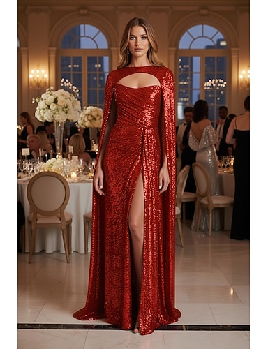 גזרת A מעטפת \ עמוד שמלות ערב אלגנטית לבוש רשמי רשמי חתונה שובל סוויפ \ בראש ללא שרוולים סירה מתחת לכתפיים Lurex Fabric עם קפלים שסע 2025