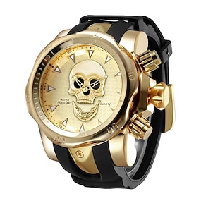 שעון קוורץ גברים עם עיצוב של ראש גולגולת רצועת סיליקון ספורטיבי אנלוגי שעון קוורץ מתנה להHalloween