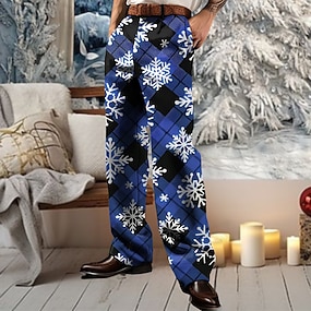 חג המולד בגדי ריקוד גברים פתית שלג תחפושת חג המולד מכנסיים חליפות מכנסיים חליפה מותן בינוני סגנון קלאסי בָּחוּץ חגים מכנסיים ישרים עם כיסים אביב סתיו חורף הדפסת תלת מימד אודם