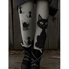 בגדי ריקוד נשים חותלות חופשה וינטאג' סגנון אתני באורך מלא מותניים גבוהיםPantsחג ליל כל הקדושים גראפי חיה חתול הדפסת תלת מימד ייבוש מהיר נשימה רך סטרצ'י (נמתח) בָּחוּץ בית קזו'אל שחור לבן כתום חאקי