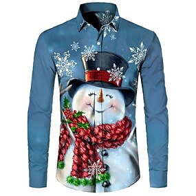 חג המולד גברים של חג המולד סצנת חג המולד חולצות מודפסות איש שלג עץ סתיו חיצוני רחוב סתמי & חולצת חורף אפור שרוולים ארוכים אדום ירוק אפור s m l