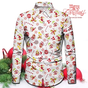 סנטה קלאוס עץ חג המולד יום יומי בגדי ריקוד גברים חולצה חג מולד לבוש יומיומי ליציאה סתיו חורף צווארון מתקפל שרוול ארוך נייבי כהה, פול S, M, L בד מתיחה 4 כיווני חולצה