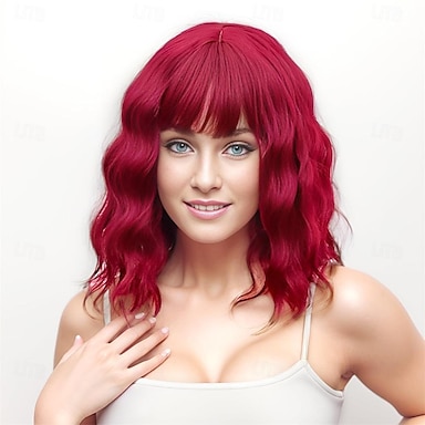 פאות סינתטיות 14 אינץ' לפאה לנשים סגול קצר שיער בובו מתולתל עם פוני מסיבה רעננה יומית