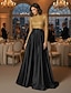 שמלת ערב עם חרוזים זהובים, גזרה A, שמלה רשמית אלגנטית, חתונה רשמית, שרוולים ארוכים, צווארון גבוה, חצאית סאטן שחורה עם קפלים 2025
