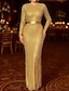 שמלת ערב עם נצנצים זהב, חרוזים בתולת ים / חצוצרה / עמוד, שמלה רשמית אלגנטית, חתונה רשמית, שרוולים ארוכים, צווארון עגול, נצנצים ודוגמאות גיאומטריות 2025