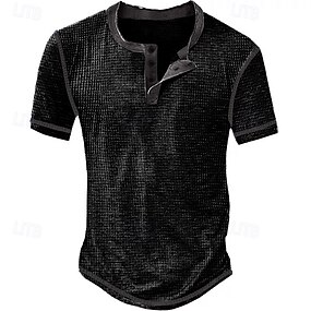 בגדי ריקוד גברים חולצת הנלי וופל טי שירטס שרוולים קצרים צבע אחיד וינטאג' כפתורים הנלי בָּחוּץ קזו'אל יומי קיץ שחור לבן צהוב חולצת טריקו של הנלי