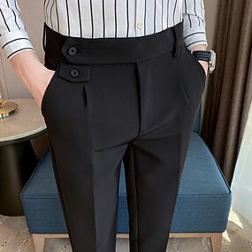 בגדי ריקוד גברים טקס סיום חליפות מכנסיים מכנסיים קפלים מכנסיים חליפה כיס עלייה גבוהה אחיד קומפורט נושם עד לקרסול מִשׂרָד עֵסֶק קזו'אל אלגנטית וינטאג' שחור לבן מותניים גבוהים מיקרו-אלסטי