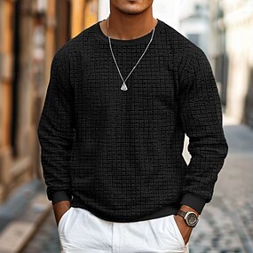 בגדי ריקוד גברים חולצה קצרה טי שירטס טי וופל סריג טופ טי שרוול ארוך צווארון עגול קצר קיץ & אביב אחיד אופנתי מעצב בסיסי חופשה רחוב ליציאה שחור פול אפור בהיר חולצה עליונה לגברים