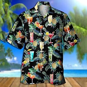 בגדי ריקוד גברים פלָמִינגוֹ מנורות חולצה חולצת הוואי חולצת אלוהה שרוולים קצרים חולצה צווארון מתקפל טרופי אופנתי סגנון רחוב קזו'אל הוואי חגים שחור צהוב ירוק בהיר S M L