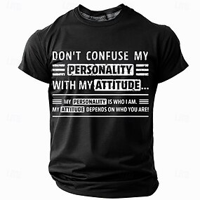 חולצת טי גרפית לגברים עם שרוולים קצרים 'אל תבלבל בין האישיות שלי לגישה שלי' ציטוט לביטוי עצמי