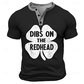 בגדי ריקוד גברים סיינט פטריק טקסט מצחיק מזל תלתן חולצה קצרה חולצת הנלי שרוולים קצרים מעצב רטרו\וינטאג' רחוב קזו'אל יומי קיץ אביב ירוק עמוק שחור ירוק הנלי חולצת טריקו של הנלי