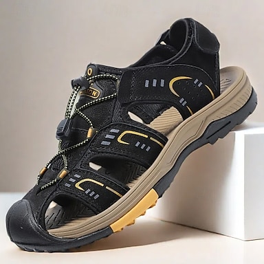 סנדלי דייגים נושמים מעור מלאכותי חום לגברים - רצועת סקוטש, עיצוב סגור סתמי, נעלי קיץ נוחות ללבוש בחוץ ויומיומי