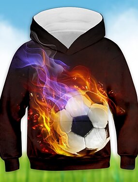 בנים תלת מימד כדורגל קפוצ'ון Pullover שרוול ארוך הדפסת תלת מימד סתיו חורף אופנתי סגנון רחוב מגניב ילדים 3-12 שנים בָּחוּץ קזו'אל יומי רגיל