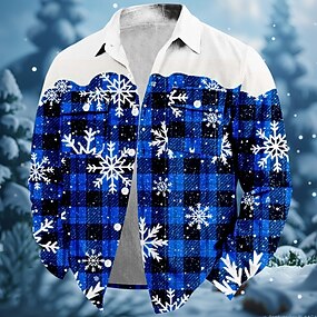 חג המולד בגדי ריקוד גברים פתית שלג תחפושת חג המולד חולצה חולצה עם כפתורים שרוול ארוך מצחיק בָּחוּץ חגים אביב סתיו צווארון מתקפל הדפסת תלת מימד חולצות צווארון כחול 1# פול