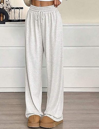 בגדי ריקוד נשים רגל רחבה מִכְנָסַיִים סגנון רחוב יום יומי באורך מלא טבעי אחיד כיס אלסטית מותניים נוח חגים לבוש יומיומי סוף שבוע אפור כהה אדום כתום לבן אורז שחור סתיו רגיל