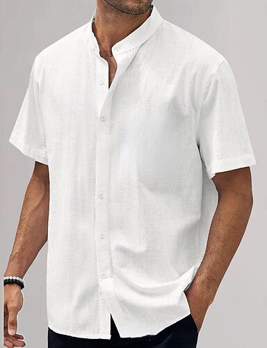 בגדי ריקוד גברים חולצת פשתן מכותנה אחיד חופשה לבן שרוולים קצרים צווארון סבא קיץ ביגוד