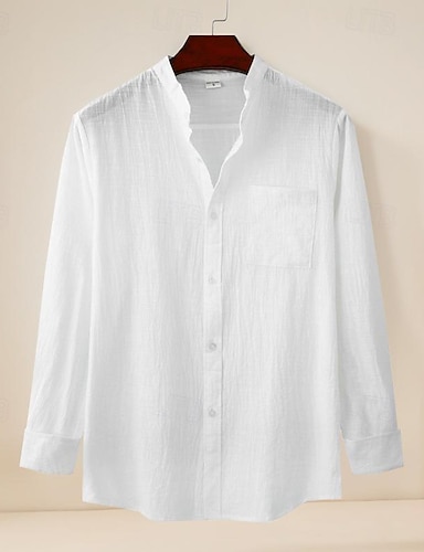 בגדי ריקוד גברים חולצה חולצת פשתן חולצת קיץ חולצת חוף חולצת פשתן מכותנה אחיד חופשה חגים שחור לבן ירוק בהיר נייבי כהה שרוול ארוך צווארון עומד(סיני) קיץ & אביב ביגוד כפתור למטה