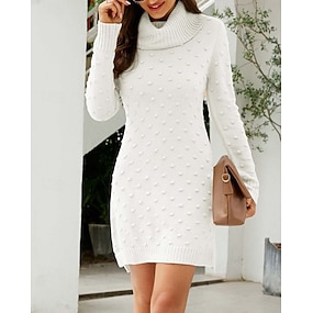 שמלת סוודר מכוערת כיסוי צוואר סרוג במרקם סתיו חורף עבודה אלגנטית אופנה יומית שרוול ארוך צבע אחיד לבן ירוק