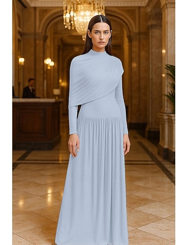 גזרת A שמלות ערב אלגנטית לבוש רשמי רשמי חתונה עד הריצפה שרוולים קצרים צווארון עגול קצר ג'רסי עם קפלים אסוף 2025