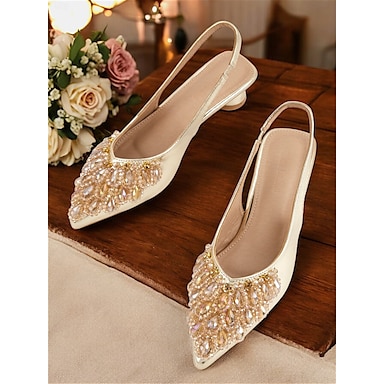 נעלי כלה נצמדות עם פירוט חרוזים לנשים - דירות מעוטרות קריסטל שנהב לאירועי כלה
