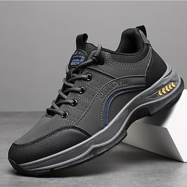 נעלי ספורט לגברים בצבע בז' דמוי עור לחוץ - נעלי שטח עמידות נגד החלקה לטיולים, טיולים ולשימוש יומיומי