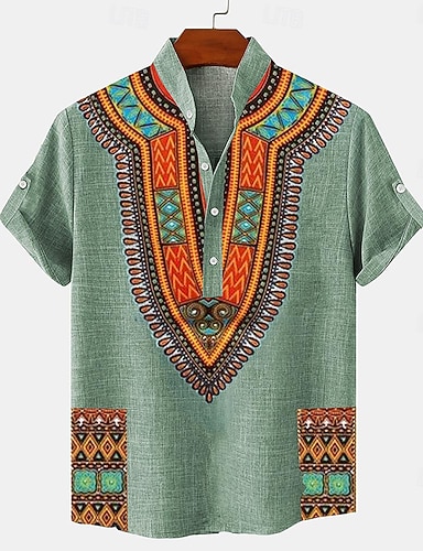 בגדי ריקוד גברים חולצת פשתן חולצת הנלי חולצות רטרו חולצה וינטג' חולצה אתנית אתני חופשה יומי פול תלתן חאקי שרוולים קצרים צווארון מנדרינה קיץ אביב ביגוד דפוס