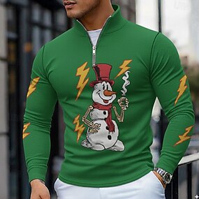 חג המולד בגדי ריקוד גברים איש שלג מצחיק פּוֹלוֹ שרוול ארוך חולצות פולו צווארון סבא יום יומי חגים לבוש יומיומי תלבושת פסטיבל הדפסת תלת מימד רבע זיפ פולו אביב סתיו חורף אודם תלתן