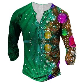 חג המולד גברים סצנת חג המולד הנלי חולצת טריקו גרפית עץ פתית שלג מעצב אופנה מזדמן הדפס תלת מימד הנלי וופל ספורט חוצות חג פסטיבל כחול אדום & חולצת הנלי לבנה סגולה עם שרוולים ארוכים