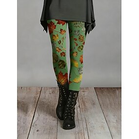 בגדי ריקוד נשים חותלות טייץ נעים חופשה וינטאג' סגנון אתני באורך מלא מותניים גבוהים גראפי מדפיס נוח גמישות גבוהה קזו'אל יומי חופשה ירוק עמוק תלתן אביב סתיו גזרה צרה