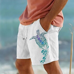 בגדי ריקוד גברים חיה צב ים שורטים מכנס קיץ קצר מכנסי חוף מותן בינוני סגנון רחוב הוואי מעצב קזו'אל יומי חגים שרוך אלסטית מותניים מְעַצֵב ביגוד