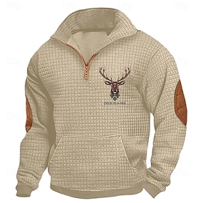 בגדי ריקוד גברים טרנינג סווטשירט וופל סווטשירט עם רבע רוכסן לבן יין ירוק צבא חאקי אפור בהיר חצי רוכסן גראפי דפוס דפוס רבע מיקוד חג מולד יומי חגים הדפסים אחרים פוליאסטר סגנון רחוב יום יומי סתיו חורף