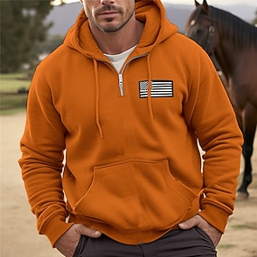 בגדי ריקוד גברים קפוצ'ון קפוצ'ון רוכסן מלא פול כתום חום אפור עם קפוצ'ון דגל לאומי ספורט וחוץ יומי חגים פוליאסטר סגנון רחוב מגניב יום יומי קיץ & אביב ביגוד קפוצ'ונים חולצות טריקו שרוול ארוך