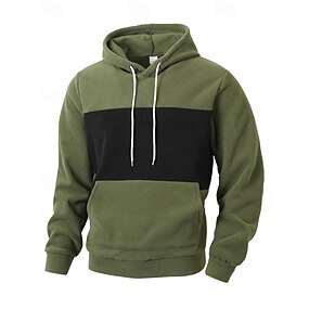 בגדי ריקוד גברים קפוצ'ון קפוצ'ון פליס שחור ירוק צבא אודם בז' עם קפוצ'ון קולור בלוק טלאים כיס ספורט וחוץ יומי חגים פוליאסטר סגנון רחוב בסיסי יום יומי סתיו חורף ביגוד קפוצ'ונים חולצות טריקו