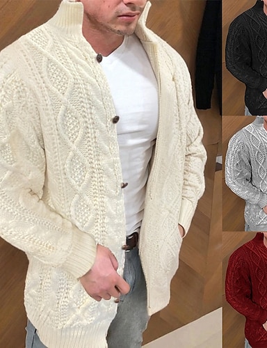 בגדי ריקוד גברים סוודר שמלה סוודר קרדיגן כבל לִסְרוֹג סרוג צבע אחיד עומד מסוגנן יום יומי בָּחוּץ בית ביגוד סתיו חורף שחור אודם S M L