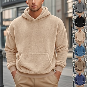בגדי ריקוד גברים קפוצ'ון קפוצ'ון פליס שחור ורוד מסמיק תלתן קפה אפור עם קפוצ'ון אחיד שרוך כיס ספורט וחוץ יומי חגים פוליאסטר סגנון רחוב בסיסי יום יומי סתיו חורף ביגוד קפוצ'ונים חולצות טריקו