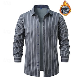 בגדי ריקוד גברים חולצה חולצה קז'ואל חולצת פלנל חולצת פליסה חולצה עם כפתורים אפור שרוול ארוך פס דש חופשה חגים כיס ביגוד פוליאסטר אופנתי שמור על חם יום יומי נוח