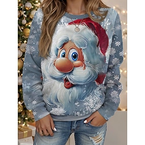 בגדי ריקוד נשים סווטשירט סוודר קפוצ'ונים גראפי סנטה קלאוס חג מולד קלסי יום יומי פסטיבל שרוול ארוך צווארון עגול קצר צווארון עגול חולצות רגילות קזו'אל חגים דפוס כחול בהיר סתיו חורף