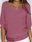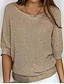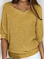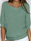 בגדי ריקוד נשים סוודר יומי מסוגנן יום יומי צבע אחיד מצולע צווארון V סרוג שרוול 4\3 חולצות רגילות לִסְרוֹג בָּחוּץ יומי שחור ירוק בהיר קיץ אביב