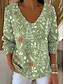 בגדי ריקוד נשים סוודר אלגנטית אופנתי סגנון רחוב פרחוני גראפי צווארון V סרוג שרוול ארוך חולצות רגילות לִסְרוֹג סוף שבוע שחור ירוק בהיר אביב סתיו