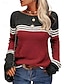 בגדי ריקוד נשים סוודר סגנון רחוב יום יומי פסים צווארון עגול קצר טלאים סרוג שרוול ארוך חולצות רגילות לִסְרוֹג יומי חגים ליציאה יין אדום לבן סתיו חורף