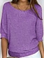 בגדי ריקוד נשים סוודר יומי מסוגנן יום יומי צבע אחיד מצולע צווארון עגול קצר סרוג שרוול 4\3 חולצות רגילות לִסְרוֹג בָּחוּץ יומי שחור לבן קיץ אביב