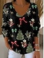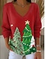 בגדי ריקוד נשים סוודר יום יומי רך עץ חג המולד מצולע צווארון V סרוג דפוס שרוול ארוך חולצות רגילות לִסְרוֹג בָּחוּץ יומי סוף שבוע שחור ירוק בהיר סתיו חורף
