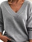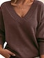בגדי ריקוד נשים סוודר יומי מסוגנן יום יומי צבע אחיד מצולע צווארון V סרוג שרוול 4\3 חולצות רגילות לִסְרוֹג בָּחוּץ יומי שחור לבן קיץ אביב