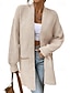 בגדי ריקוד נשים סוודר קרדיגן יומי יום יומי צבע אחיד חזית פתוחה סרוג שרוול ארוך חולצות ארוכות לִסְרוֹג בית עבודה חאקי אפור בהיר סתיו חורף