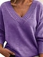 בגדי ריקוד נשים סוודר יום יומי צבע אחיד מצולע צווארון V סרוג שרוול ארוך חולצות רגילות לִסְרוֹג יומי חגים סוף שבוע צהוב סגול סתיו